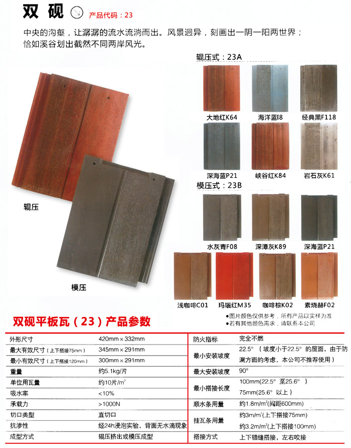 整體瓦和鍍層瓦在特性上是沒有差別的。較大的不一樣是在藝術美學上,鍍層瓦面有一層高光澤的表面而整體瓦的表面是凸凹不平的。殊不知,因為在瓦的表面著色是根據混凝土粘合劑擠壓成型而成的,因此鍍層瓦不建議在風雪比較嚴重的地域應用。