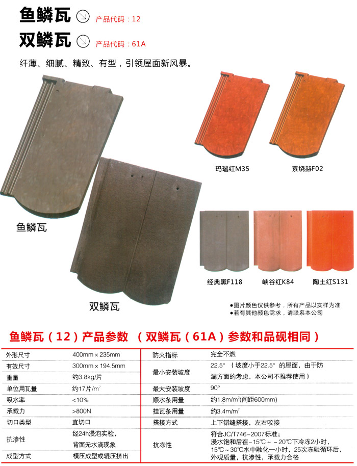 1、外型:外型整齊,裝飾條豎直,不扭不翹,正反兩面沒有破損裂痕,瓦爪完好無損齊棱齊角。